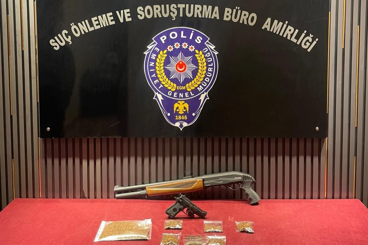 Operasyonda 1 adet ruhsatsız tüfek, 1 adet ruhsatsız tabanca, 126,72 gram uyuşturucu madde ele geçirildi.