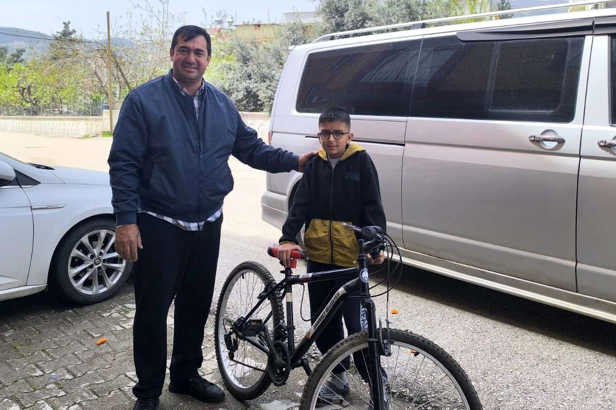 Gaziantep’te ortaokul öğrencisi genç, başarısından dolayı kendisine verilen bisikleti depremzede çocuğa hediye ederek anlamlı bir davranış sergiledi. Derslerinde elde ettiği başarısı nedeniyle okul birincisi olan genç, okul yönetimi ve sınıf öğretmeni tarafından bisiklet ile ödüllendirildi. Genç kızın, bisikleti bir depremzede çocuğa hediye etmek istediğini belirtmesi üzerine ailesi bisikleti 6 Şubat 2023’te meydana gelen Kahramanmaraş merkezli depremlerden en çok etkilenen Nurdağı ilçesinin kırsal Gökçedere Mahallesi Muhtarı Ümit Kaçakçı’ya teslim etti. Kaçakçı, genç kızın isteğini yerine getirerek bisikleti mahalledeki ilkokul öğrencisi 4’üncü sınıf öğrencisi depremzede Kaan Yaman’a verdi. Bisikleti alan Yaman, daha önce hiç bisikletinin olmadığını belirterek, kendisine bisikletini hediye eden Cansever’e ve vesile olanlara teşekkür etti. Duyarlı kız çocuğunu tebrik eden Gökçedere Mahallesi Muhtarı Ümit Kaçakçı, "Gaziantep’ten Nurdağı’na uzanan bu duyarlı davranışı bizi duygulandırdı. Fuat Cansever ağabeyimizin kızı okulda birincilik elde etmiş ve okuldan hediye olarak bisikletini depremzede bir çocuğumuza gönderdi. Kendisini ve ailesini tebrik ediyoruz. Dünya paylaştıkça güzelleşir. Çocuğumuz çok sevindi. Bu örnek ve duyarlı davranışından dolayı kız çocuğumuzu, ailesini, okul yönetimini ve öğretmenlerini tebrik ediyorum" dedi.