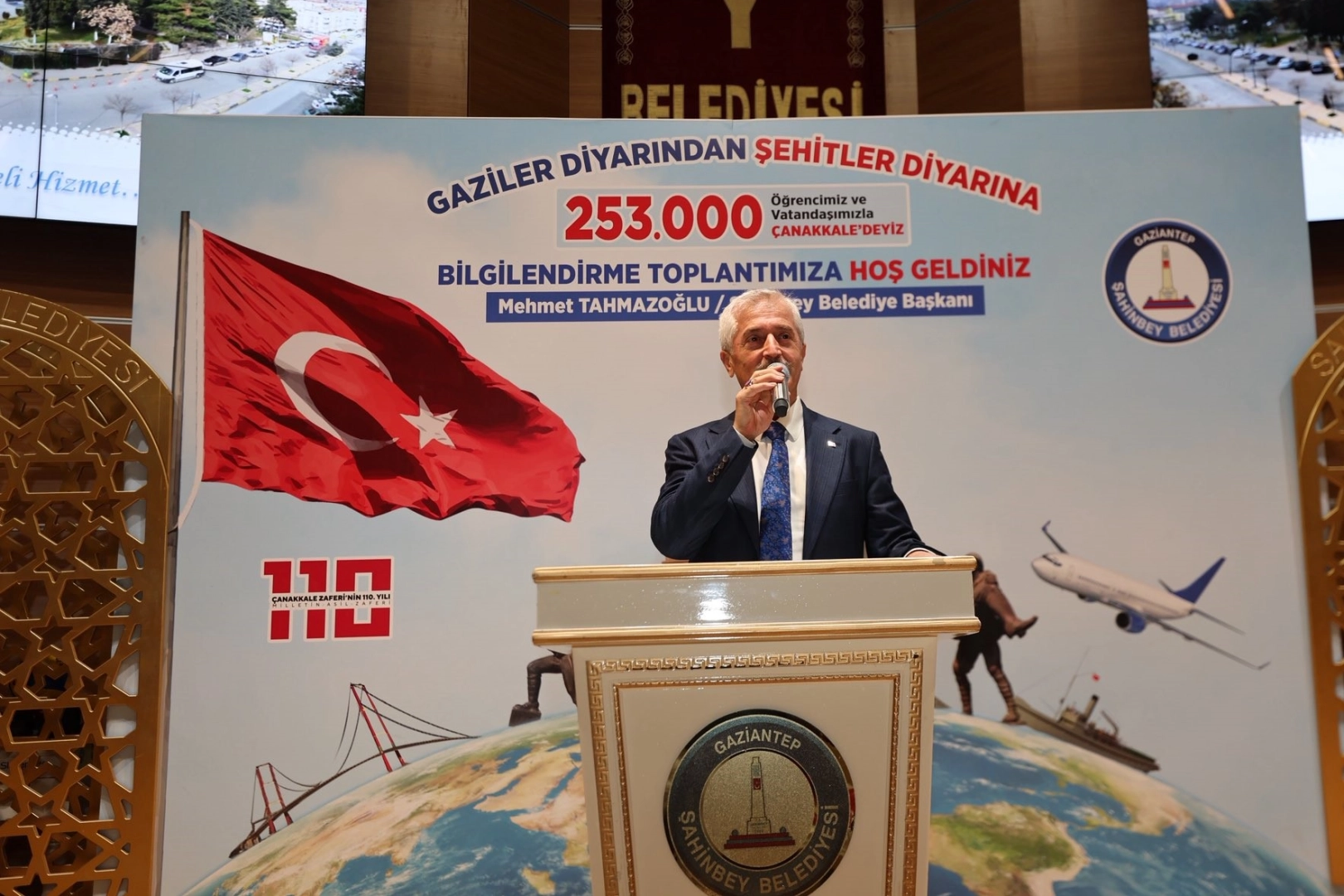 Şahinbey Belediyesi tarafından düzenlenen bilgilendirme toplantısında öğrencilerle bir araya gelen Şahinbey Belediye Başkanı Mehmet Tahmazoğlu, gençlere Çanakkale Zaferi'nin önemini anlatarak, "Çanakkale, milletimizin iman gücüyle destan yazdığı bir topraktır. Bu projeyle gençlerimizin, ecdadın hangi şartlarda mücadele ettiğini görmelerini, vatan sevgisini daha güçlü hissetmelerini istiyoruz. Çünkü geleceğimizi emanet edeceğimiz gençlerimizin, bu toprakların hangi bedellerle kazanıldığını bilmesi çok önemlidir. Şahinbey Belediyesi olarak ‘Gaziler Diyarından Şehitler Diyarına' projesini gerçekleştirdik. Çanakkale ziyaretlerinde 253 bin vatandaşımızı ve öğrencimizi ecdatla buluşturuyoruz. Türkiye'de uçakla gençleri Çanakkale'ye götüren başka bir proje yok. Çanakkale'de ecdadımız yedi düvele karşı çok büyük mücadele vermiş. İmanlı göğsünü siper etmiş. 15 yaşındaki gençler vatan elden gitmesin, ezanımız dinmesin diyerek canlarını seve seve feda etmişler. Biz de onlara teşekkür ziyareti olarak Çanakkale ziyaretlerini düzenliyoruz. Vatanımızın milletimizin kıymetini çok iyi bilmeliyiz. Çanakkale'ye öğrencilerimizi ve vatandaşlarımızı bu nedenle götürüyoruz" dedi. "Çok heyecanlıyız"