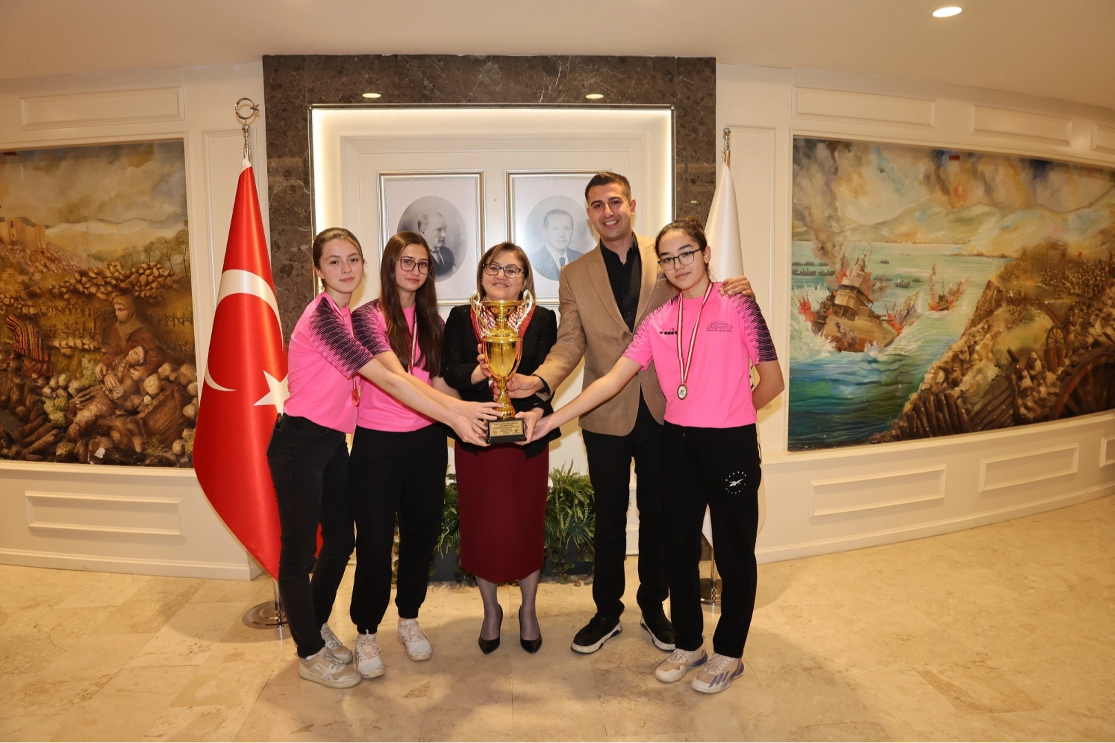 Gaziantep Büyükşehir Belediyesi Spor Kulübü bünyesinde, Türkiye genelinde ulusal ve bölgesel müsabakalarda derece elde eden sporcular, Gaziantep Büyükşehir Belediye Başkanı Fatma Şahin'i makamında ziyaret etti.