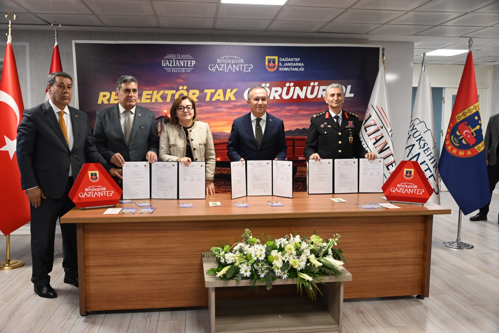 Gaziantep İl Jandarma Komutanı Tümgeneral Halil Şen, projenin amacı hakkında bilgi vererek, “Traktör sürücülerini reflektör kullanımı konusunda bilinçlendirmek, gece ve düşük görüş koşullarında meydana gelebilecek kazaları önlemek ve en önemlisi can kayıplarını ve yaralanmaları en aza indirmektir. Özellikle akşam saatlerinde ve gece koşullarında traktörlerin yeterince görünür olmaması hem sürücüler hem de diğer yol kullanıcıları açısından ciddi riskler taşımaktadır. Oysaki bu kazaların büyük bir bölümü, basit ama hayati öneme sahip reflektör kullanımıyla büyük ölçüde azaltılabilmektedir. Dağıtımını gerçekleştireceğimiz reflektörler traktör ekipmanı gibi görünse de bir hayatı kurtaracak kadar hayati öneme sahiptir. Unutulmamalıdır ki görünür olmak hayat kurtarır” diye konuştu.