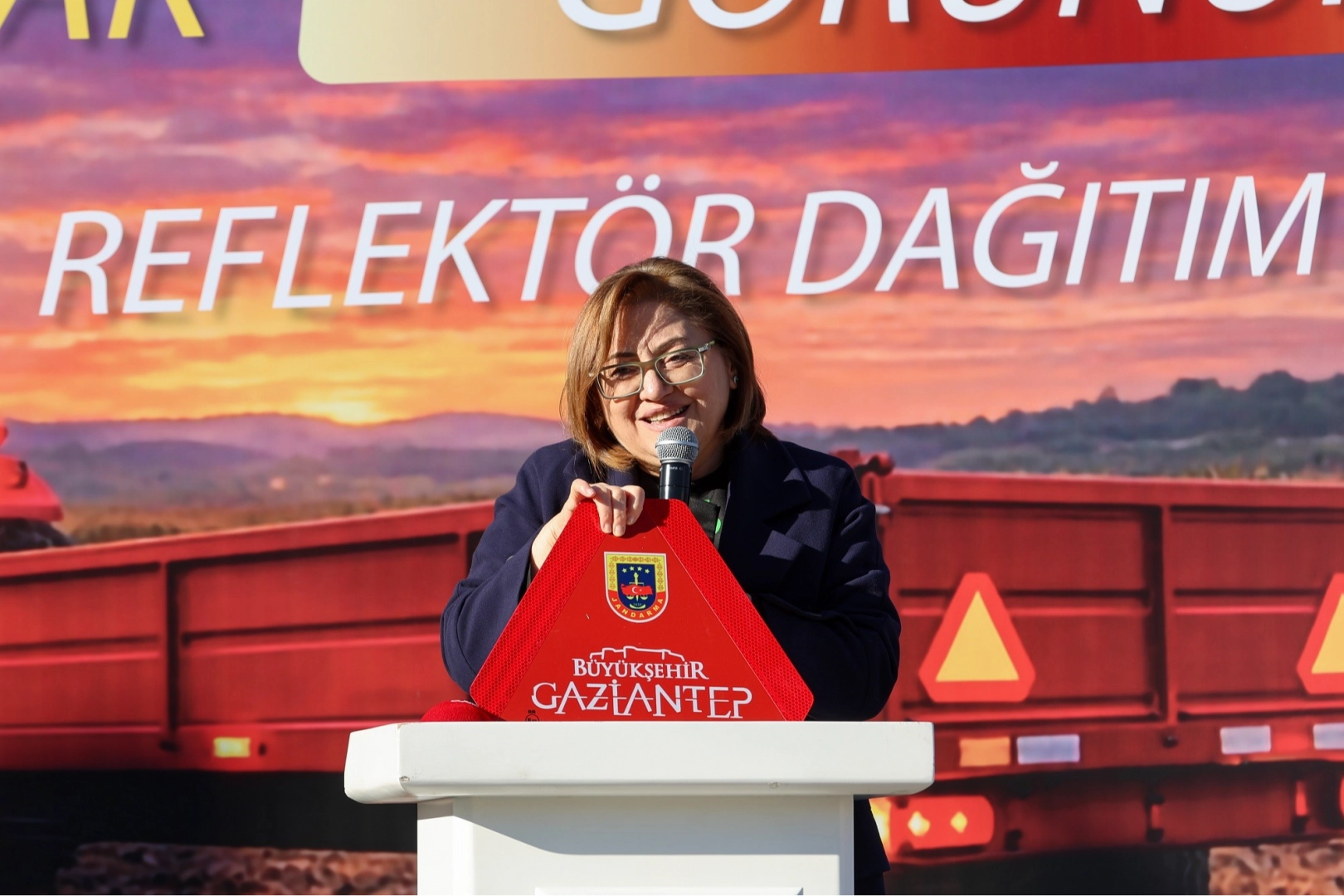 Gaziantep Büyükşehir Belediye Başkanı Fatma Şahin'in katılımıyla düzenlenen programda çiftçilere reflektör dağıtılarak trafikte görünürlüğün artırılması hedefleniyor. Tarım araçları arasında önemli bir yere sahip olan traktörlerde, Karayolları Trafik Kanunu'nda yer alan reflektör bulundurma zorunluluğu ve trafik güvenliğinin artırılması amacıyla hayata geçirilen proje, Gaziantep Valiliği ve Gaziantep İl Jandarma Komutanlığı iş birliğinde yürütülüyor. Proje kapsamında reflektör dağıtımları Nizip ilçesine bağlı Uluyatır Mahallesi'nde başladı. İlk reflektörlerin montajını çiftçilerle beraber Başkan Fatma Şahin traktörlere yaptı. Türkiye'de ilk olan proje ile 10 bin reflektör dağıtılacak