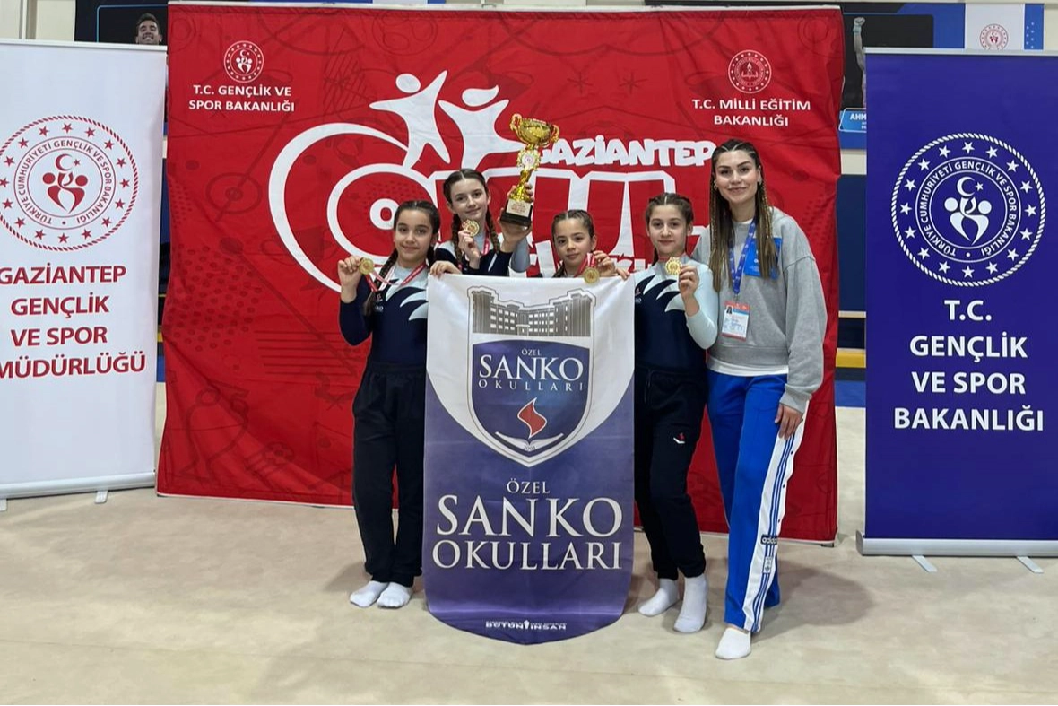 Maya Kayın, Esma İnce Tahtacı, Rüya Kuzuoğlu ve Mira Akın’dan oluşan SANKO Okulları Küçük Kızlar Takımı, Mehmet Vehbi Dinçerler Jimnastik Salonunda düzenlenen müsabakada il birinciliği kazandı. Yıldız Kızlar Takımında ise Selin Sakmak, Elif Tavşancıl ve Arya Sakıcı il ikinciliğ elde etti.