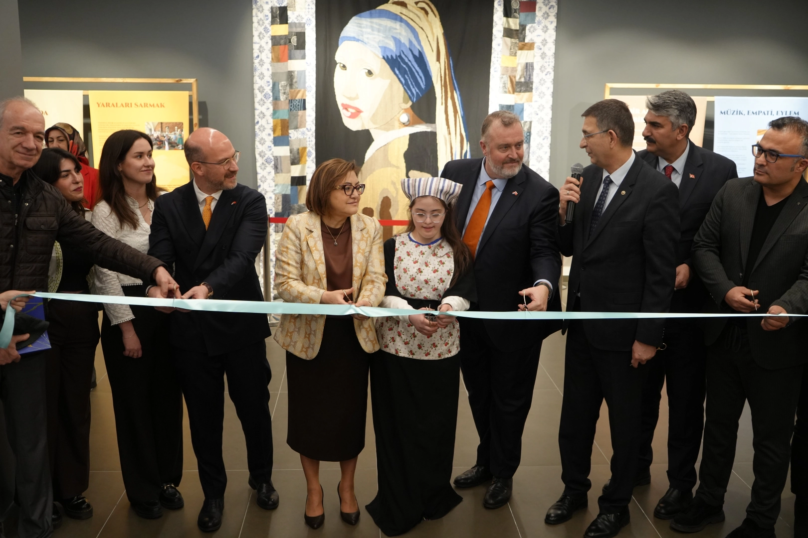 Açılış konuşmalarının sonrasında, Başkan Fatma Şahin ve protokol üyeleri kurdele kesim törenine geçti. Ardından sergi alanını gezen protokol üyeleri günün anısına fotoğraf çektirdi.
