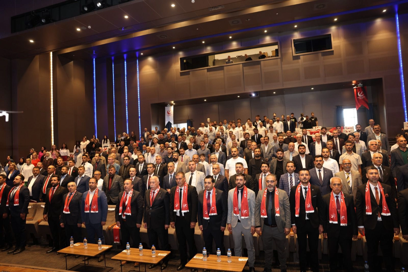 Yoğun kalabalık ve coşku içerisinde geçen toplantıda, salonda dalgalanan Filistin ve Türk bayraklarıyla “Gazze’nin yanındayız” mesajı verildi.