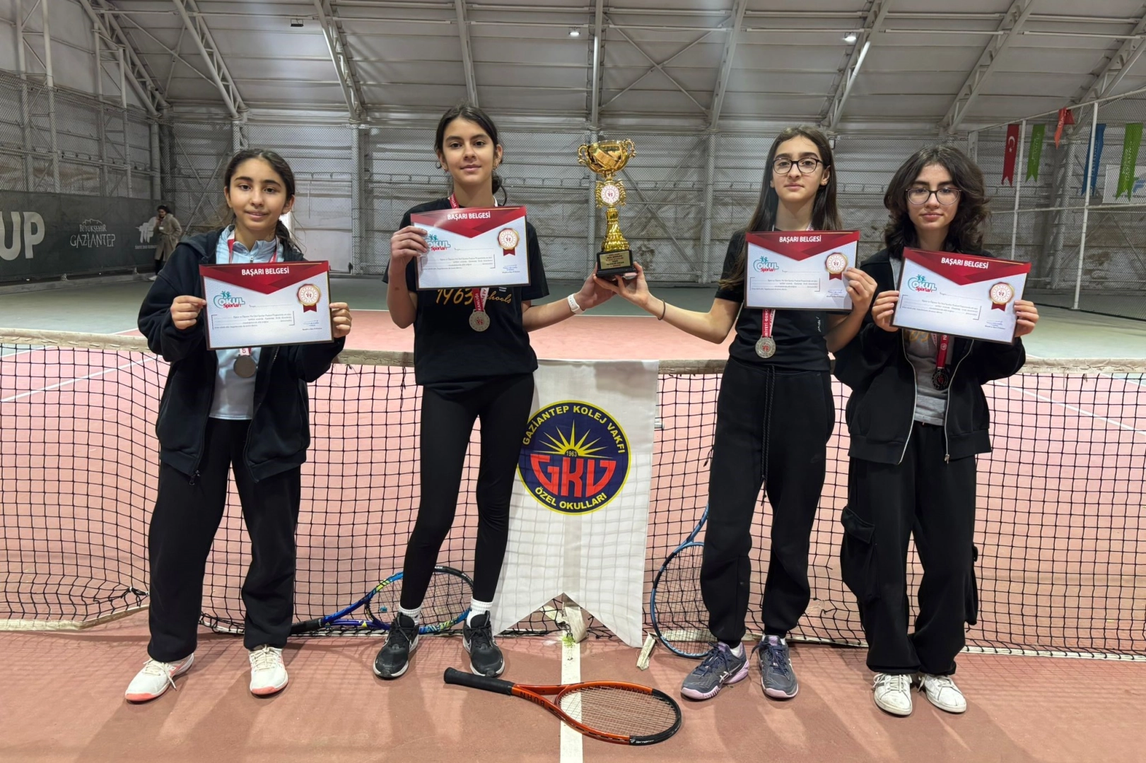Gaziantep Gençlik ve Spor İl Müdürlüğü ve Okul Sporları tarafından Gaziantep'te düzenlenen Yıldızlar (Kızlar-Erkekler) kategorisi tenis müsabakaları sonucunda Gaziantep Kolej Vakfı Özel Ortaokulu öğrencileri Elvin Çelik, Ela Umut Kalendergil, Dilem Mete, Nehir Ece Ulutaş takım halinde il ikincisi olurken Berkay Turan, Meriç Demircioğu, Efe Öztürkmen ise takım halinde il ikincisi olarak müsabakaları başarıyla tamamladı.