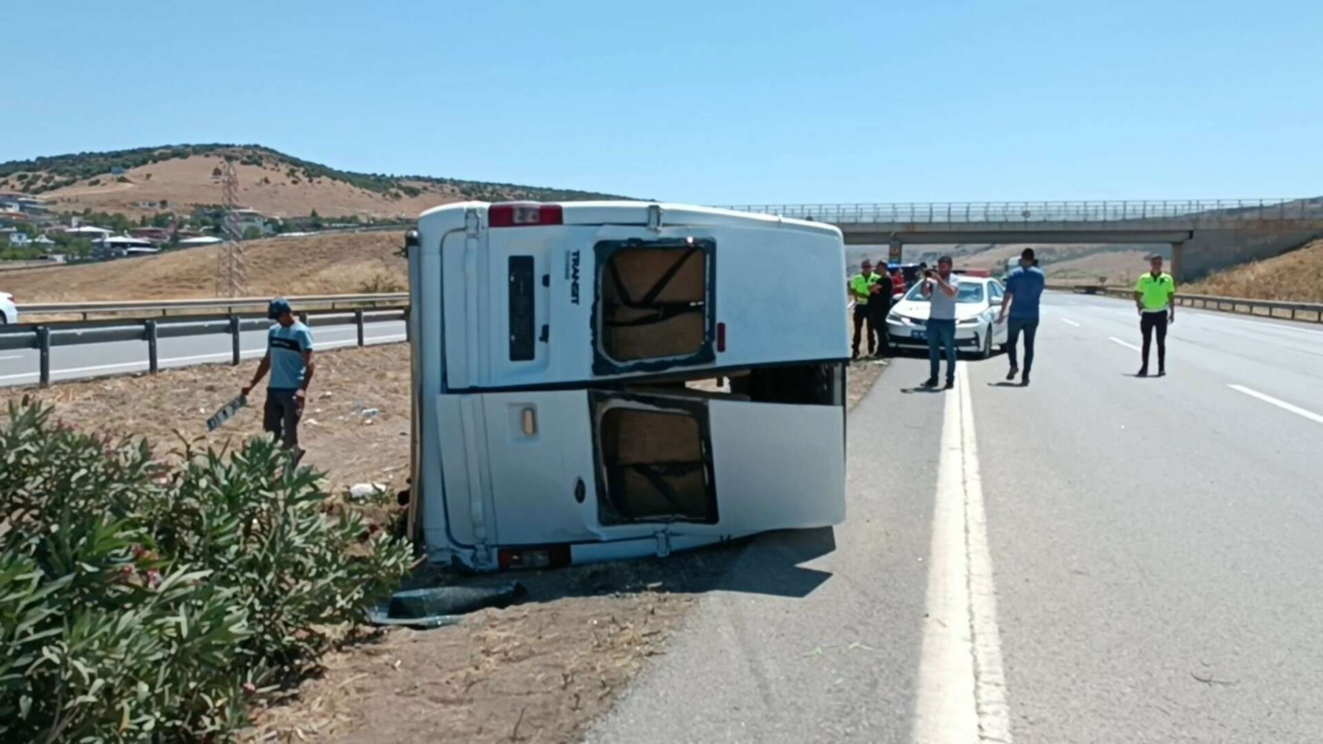 Hatay'dan Gaziantep'e yolcu taşıyan minibüsün direksiyon hâkimiyetini kaybetmesi sonucu devrilen minibüste 11'i yabancı uyruklu 13 kişi yaralandı.
