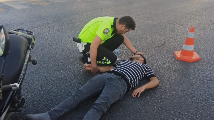 Kaza sonrası devrilen motosikletin ismi öğrenilemeyen sürücüsü yaralandı. Kaza sonrası olay yerine polis ve sağlık ekipleri sevk edildi. Yaralı, ihbar çevredeki vatandaşların ihbarı üzerine olay yerine gelen sağlık ekiplerince yapılan ilk müdahalenin ardından ambulansla hastaneye kaldırıldı.