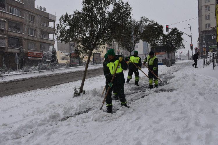 Kar yağışının başlamasıyla birlikte sahaya inen ekipler, yolların açık tutulması ve ulaşımda aksama yaşanmaması için kar küreme ve tuzlama çalışmalarını 24 saat esasına göre gerçekleştiriyor. Özellikle hastane, okul, kamu kurumları ve toplu taşıma güzergâhlarında öncelikli çalışma yapılıyor. Kaldırımlar ve yaya yollarında ise buzlanmaya karşı temizlik ve tuzlama çalışmaları titizlikle sürdürülüyor.