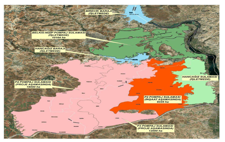 Ali Şahin, P2 safhasının tamamlanmasıyla sadece P2 bölgesinde milli ekonomiye yıllık 800 milyon TL katlı sağlanacağını ve yüzlerce kişiye ek istihdam olanağı sunulacağını ifade ederken sözlerini şöyle sürdürdü: “P3 ve P4 aşamalarının da planlanmasıyla hazırlanan P2 Sulama projemizin tamamlanan ihale hazırlıklarında, Belkıs-Nizip P1 Pompaj Sulamasında inşaa edilen 5 MW Kurulu gücünde GES tesisine ilave olarak enerji maliyetlerini düşürmek amacıyla DSİ tarafından 9,4 MW Kurulu gücünde GES tesisi projeleri hazırlandı ve işin kapsamına dahil edildi.”