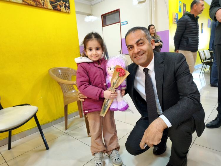 Ziyaret sırasında öğretmenlerimizin çocuklarıyla da yakından ilgilenen Müdürümüz, miniklere hediyeler takdim etti.
