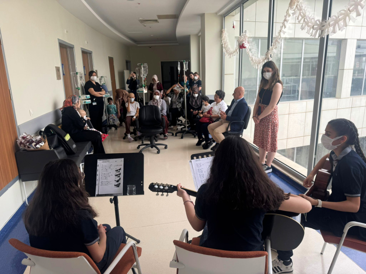 Müzik dinletisinin ardından, tedavi gören çocukların annelerine çiçek takdim edildi.