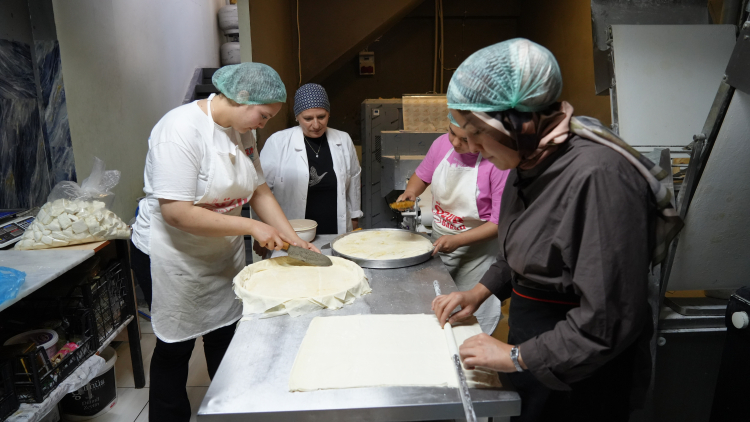 Kadın börek ustası olma geçmişini anlatan Derya Fesligil, açtığı dükkanda MESEM öğrencilerini de yetiştirdiğini söyleyerek, "İki kızım var 15 yıl önce evde üreterek başladım. Hediye götürüyordum ardından ‘güzel yapıyorsun, bizde istiyoruz' gibi yorumlar aldım. İlk başta satmak istemedim ‘neden üretmiyorsun?' dediler. Küçük kızım üniversiteye başlayacaktı ve babasının verdiği harçlık dışında bende destek olmak istedim. Diğer kız çocuğumda okulda harçlıksız kalmasın diye onunla birlikte başladım. Kadınlar günü için Ticaret Odası'nın programları oluyordu. Sonra Büyükşehir Belediyesi'nin Kadın Girişimci Destek Merkezi'nde imalatçılık eğitimi aldım. Gaziantep'te ilk ve tek kadın baklava ve börek ustası oldum. Simitçilere, kafelere, hastane kantinlerine dağıtım ve imalat yaptık. İl dışına da verdiğimiz oldu. Yıllar sonra ustalık belgesini ve usta öğretici belgesini aldım. Ardından kız çocuklarının da ellerinde meslek olsun dedim. 3 yıldan beri MESEM öğrencilerini yetiştiriyorum onlar da geleceğin ustası olacak" dedi.