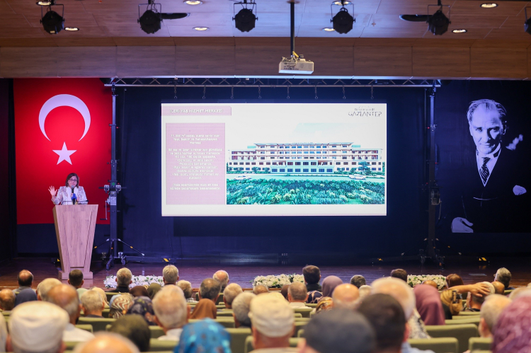 Gaziantep Büyükşehir Belediye Başkanı Fatma Şahin’in de katıldığı tanışma ve eğitim toplantısı, 2025 Aile Yılı kapsamında Gaziantep Büyükşehir Belediyesi’nin yaptığı çalışmaların anlatıldığı video ile başladı. Program açılış konuşmalarıyla devam etti.
