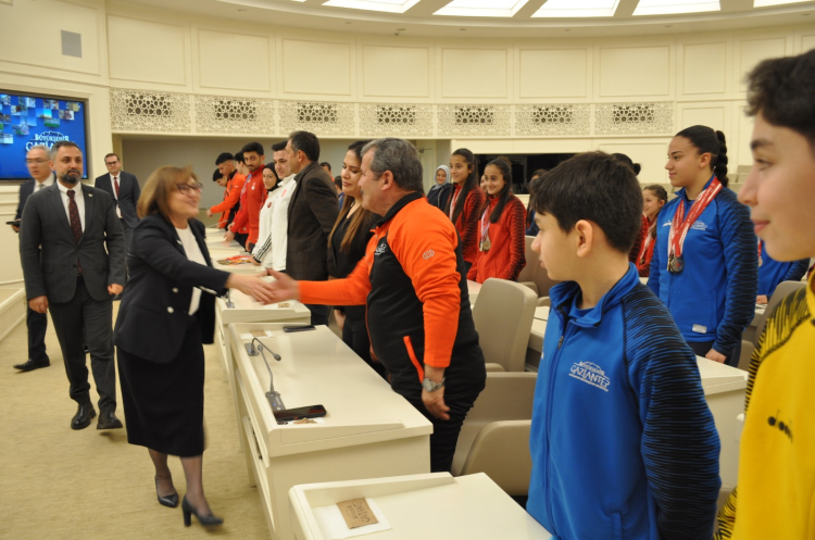 Gaziantep Büyükşehir Belediyesine Bağlı Judo ve Karatede ödül alan Sporcuları makamında kabul etti.