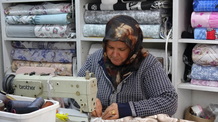 30 yıldır terzilik yaptığını ve elde ettiği gelirle 4 çocuğunu okutarak 3'ünü memur yaptığını ifade eden Bozkurt, "Önce evde el işi olarak terzilik yapıyordum. Evde terzilik yapmak yeterli gelmedi. Kendi iş yerimi kurup evime destek olmak için dükkan açtım. Dükkanımda çalışıyorum. Evde kazak süslemesi, el işi süslemeler, nakışlar ve danteller yapıyordum. Dikiş makinelerinde dikim yaparak uğraşıyordum. Evde yapmak yeterli gelmedi. Bir de evde olduğunu herkes görmüyordu. Ben de küçük bir dükkan açayım, içinde uğraşayım diye terziliğe başladım. 20 yıl kadar evde terzilik yaptım. Şimdi de 10 yıla yakın oldu dükkandayım" dedi.