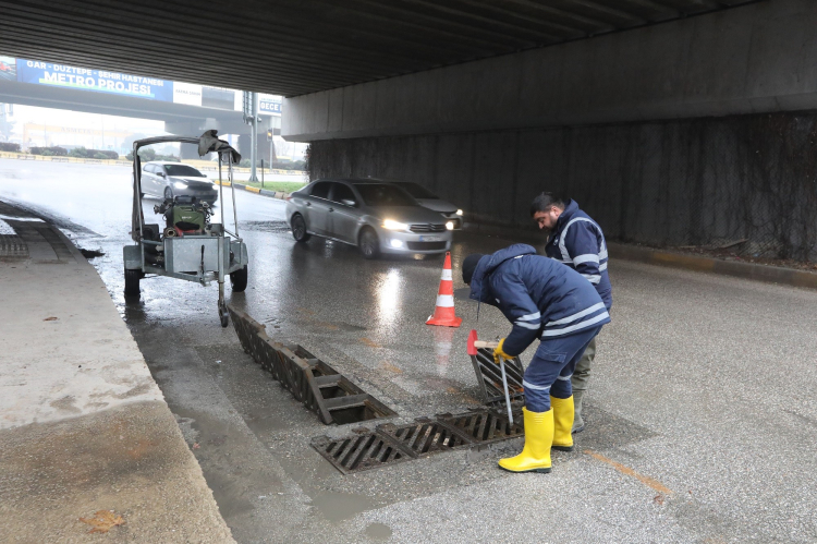 Büyükşehir Belediyesine bağlı ekipler, şehir merkezinde ulaşımın aksamaması ve su baskınlarının önlenmesi amacıyla riskli olarak değerlendirilen noktalarda tedbirlerini artırdı. Sahada mazgal temizliği, yağmursuyu tahliye ve yol güvenliği çalışmaları eş zamanlı olarak sürdürülüyor.
