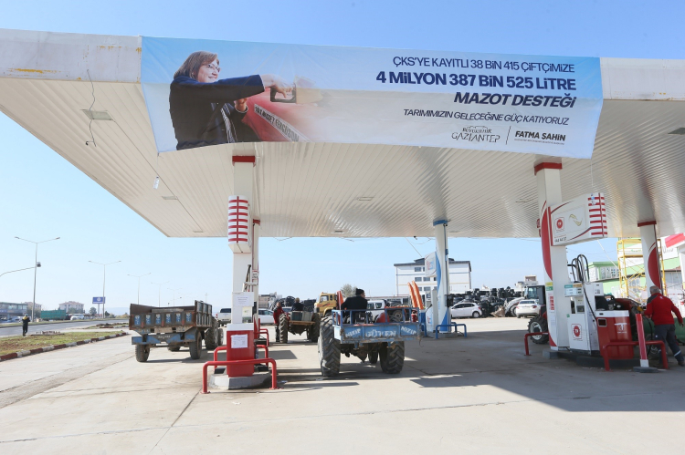Bu kapsamda 2022 yılından itibaren uygulanan proje ile Gaziantep genelinde üreticilere bugüne kadar toplam 18 milyon 392 bin 300 litre mazot desteği sağlandı.