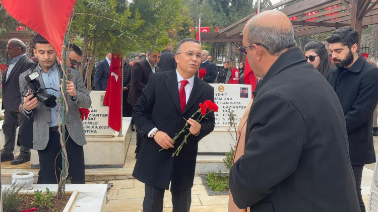 Gaziantep'te, 18 Mart Çanakkale Zaferi ve Şehitleri Anma Günü nedeniyle şehitlikle anma programı düzenlendi. Asri Mezarlık Şehitliği'nde düzenlenen programda şehit kabirlerine karanfiller bırakılarak dualar edildi.