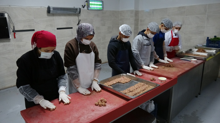 Okulda kurulan yemek bölümünde usta öğreticiler ve uzman öğretmenlerin rehberliğinde öğrenciler, birbirinden lezzetli yemekler hazırlıyor. Malzeme alımı, yemek üretimi, yemeklerin okullara ve resmi kurumlara ulaştırılması ile dağıtımı olmak üzere tüm aşamalarını kendi bünyesinde yapan okulun mutfağında, öğretmenler ve usta öğreticiler ile 43 öğrenci görev alıyor.