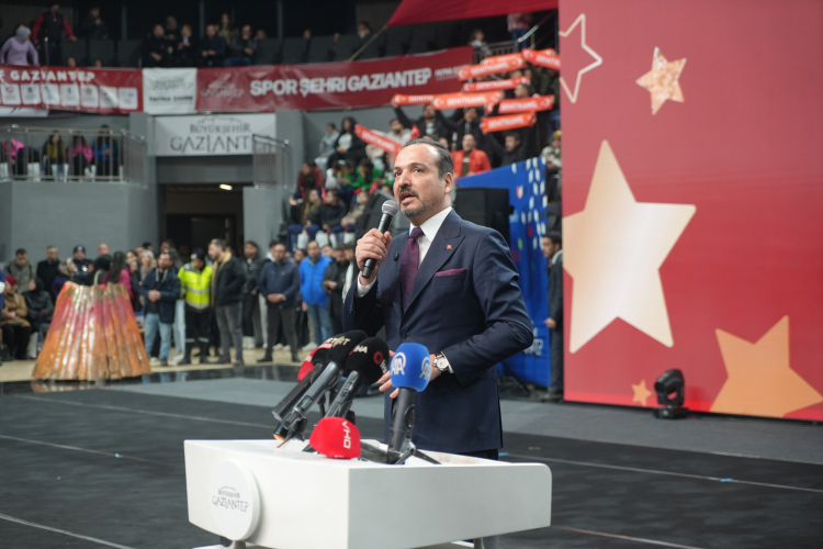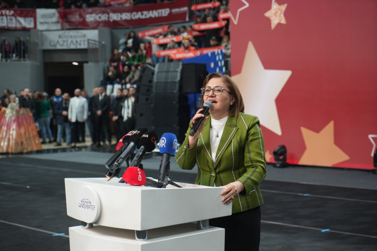 Törene katılan protokolü selamlayan Gaziantep Büyükşehir Belediye Başkanı Fatma Şahin, "Biz herhangi bir şehir değiliz. Valimizle, bakanlarımızla, milletvekillerimizle Gaziantep Modeli çalışıyor. Bu model birlikte rahmet var, kuvvet var modeli. Bu yıldızlarımız herhangi bir yıldız değil kutup yıldızı. Kutup yıldızı yön gösterir, pusuladır. Tarihtir, imandır, medeniyettir. Saygıdeğer Cumhurbaşkanımızın verdiği güçle, 1994 ruhu bu şehirde çalışıyor. Karıncalar gibi çalışıp dev eserler üretiyoruz. Burada bu şehirde partiniz ne olursa olsun ‘Söz konusu vatansa parti teferruattır' diyen bir şehiriz" ifadelerini kullandı.