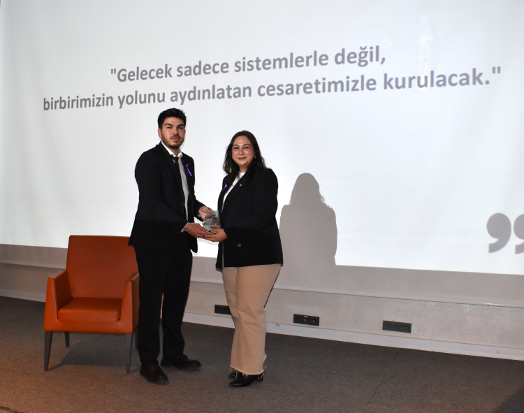 Programın bir diğer konuşmacısı Zehra Ceren Şahin ise iş dünyasındaki kariyer yolculuğunu anlatarak kadınların çalışma hayatında karşılaştıkları zorluklara değindi. Şahin, güçlü bir kariyer için özgüven, disiplin ve kararlılığın büyük önem taşıdığını vurguladı.