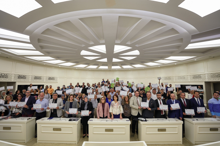 Programın sonunda Başkan Şahin ve protokol, esnafa sertifikalarını takdim etti.
