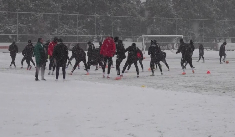 Gaziantep FK, Konyaspor maçı hazırlıklarını yoğun kar yağışı altında sürdürdü