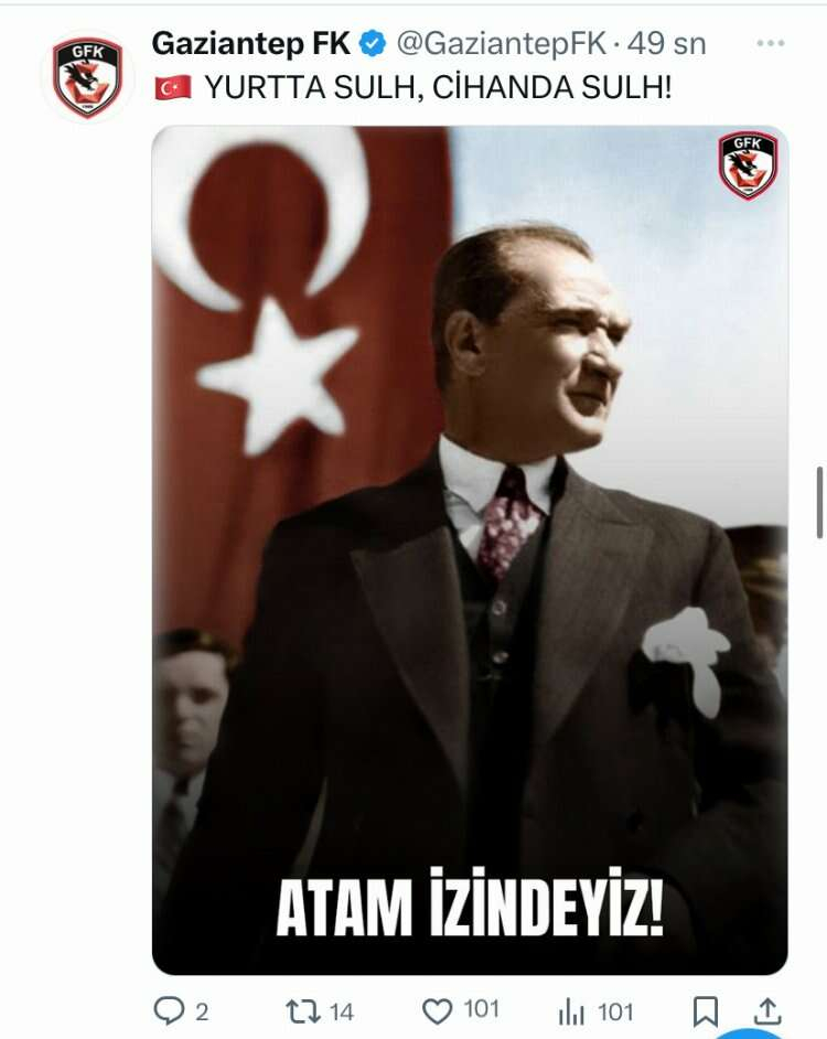 Gaziantep Futbol Kulübü yaptığı paylaşımda tarihi bir mesaj verdi.