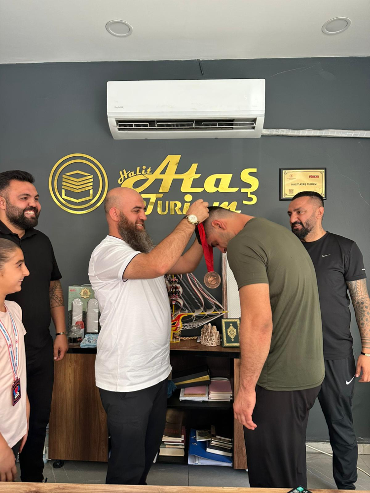 Şehitkamil Karşıyaka Spor Kulübü Başkanı ve Ataş Turizm’in sahibi ünlü iş adamı Halit Ataş, Türkiye Şampiyonası’nda dereceye giren kulüp sporcularını makamında kabul etti.