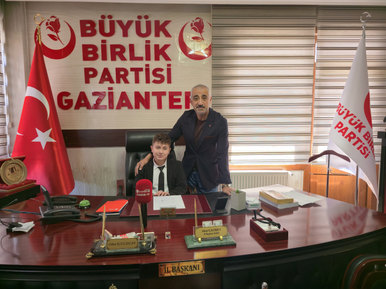 Gaziantep’te 23 Nisan Ulusal Egemenlik ve Çocuk Bayramı kapsamında dikkat çeken bir etkinliğe imza atıldı. Büyük Birlik Partisi (BBP) Gaziantep İl Başkanı ve MKYK Üyesi Orhan Kızılaslan, il başkanlığı koltuğunu temsili olarak öğrenci Tuna Çalışıcı’ya devretti.